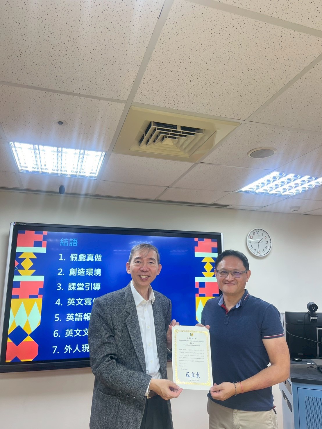 During the Q&A session, participating faculty members actively raised questions, particularly regarding the assessment of EMI effectiveness. Professors from the Department of International Affairs also shared their own experiences with implementing EMI courses at Wenzao. This cross-institutional exchange not only inspired new ideas for teaching but also injected fresh perspectives into the future development of EMI pedagogy.