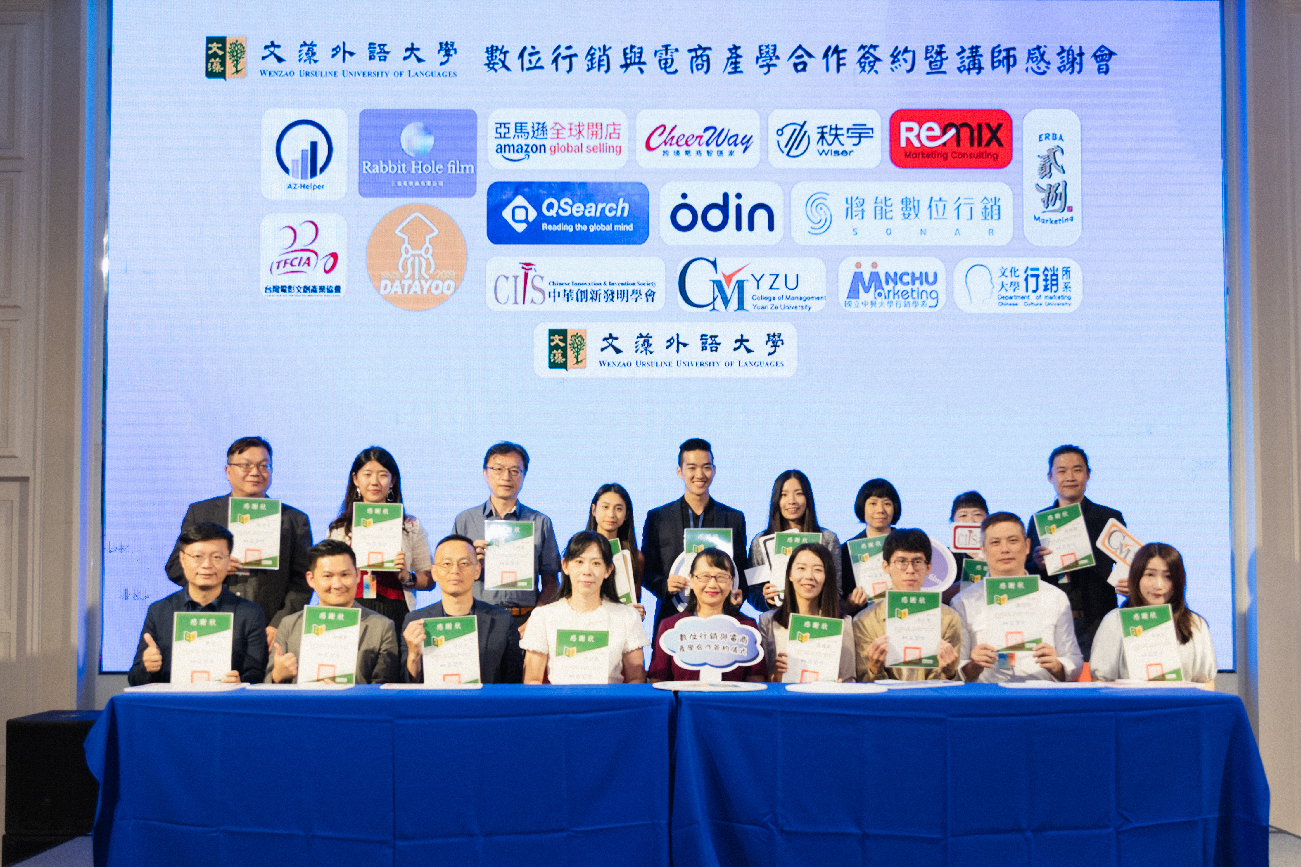 為了在全球數位轉型與國際化浪潮下,培養企業所需的具備數位行銷技能與跨文化溝通力專才,國際事務系吳紹慈老師積極推動「數位行銷與電商菁英培訓班產業新尖兵計畫」與「數位行銷與電子商務就業學程計畫」。更於8月28日舉辦「數位行銷與電商產學合作簽約暨講師感謝會」,現場28家合作企業與多位產業講師,一同見證產學合作的重要時刻。